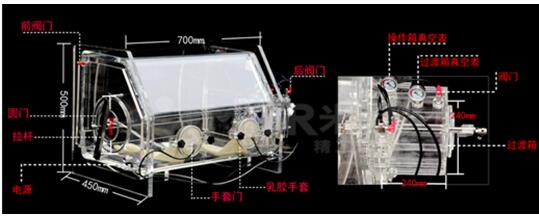 關(guān)鍵詞:手套箱,真空手套箱,惰性氣體箱,高密封性,真空度-0.1Mpa,高透明度